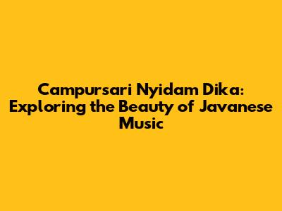 Hey music lovers! Ever stumbled upon a song that just grabs you, makes you feel all sorts of things, and leaves you wanting more? Well, that's what happened to me with "Campursari Nyidam Dika." This song, a beautiful blend of traditional Javanese music (Campursari) and modern sounds, is an absolute gem. Let's dive deep into what makes it so special. We'll explore its meaning, lyrics, and why it's become a favorite for so many, including myself! I'm pretty sure you'll be hooked too. Let's get started!