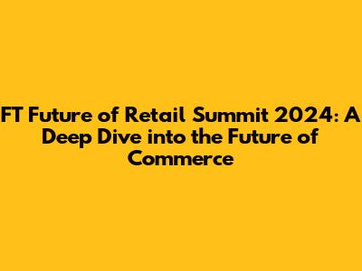 The FT Future of Retail Summit 2024 is shaping up to be an unmissable event for anyone involved in the retail industry. With a focus on AI, sustainability, and the customer experience, the summit promises to provide invaluable insights and strategies for navigating the complexities of the modern retail landscape. From the latest technological advancements to evolving consumer behaviors, the summit will equip you with the knowledge and connections you need to thrive in the future of commerce. By attending the summit, you'll have the opportunity to connect with industry leaders, network with like-minded professionals, and gain a deeper understanding of the key trends shaping the future of retail. Whether you're a retail executive, a technology innovator, or a marketing strategist, the FT Future of Retail Summit 2024 is an event you cannot afford to miss. So, mark your calendars and get ready to be inspired, informed, and connected. The future of retail is here, and this summit is your chance to be a part of it. Get ready to network, learn, and be inspired. It is a fantastic opportunity to stay ahead of the game, make valuable connections, and gain insights into the latest trends shaping the future of the industry. The summit is not just an event; it's a gateway to new opportunities, partnerships, and ideas. Embrace the future of retail and make your mark on the industry.
