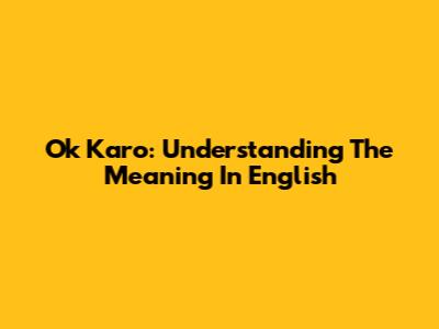 Ok Karo: Understanding The Meaning In English