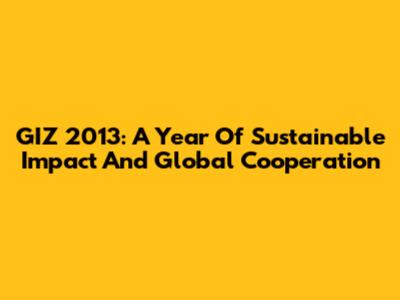 GIZ 2013: A Year Of Sustainable Impact And Global Cooperation