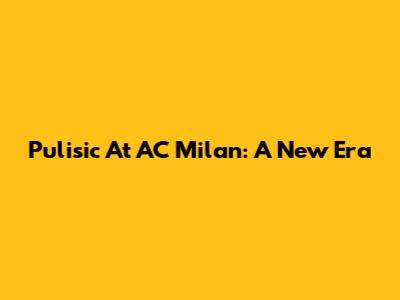 Pulisic At AC Milan: A New Era