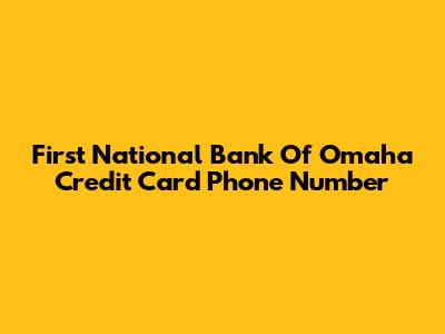 First National Bank Of Omaha Credit Card Phone Number