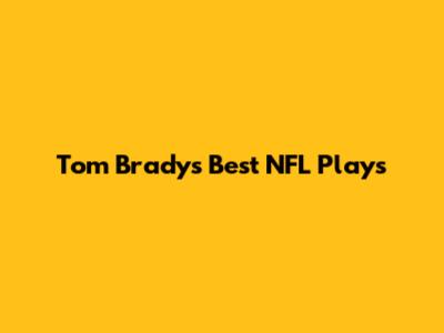 Tom Brady's Best NFL Plays