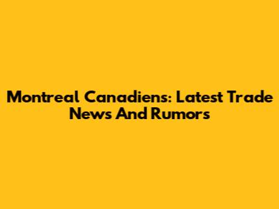Montreal Canadiens: Latest Trade News And Rumors