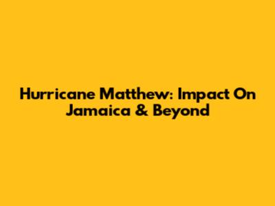 Hurricane Matthew: Impact On Jamaica & Beyond