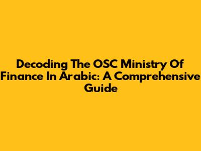 Decoding The OSC Ministry Of Finance In Arabic: A Comprehensive Guide