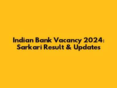 Indian Bank Vacancy 2024: Sarkari Result & Updates