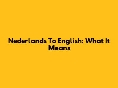 Nederlands To English: What It Means