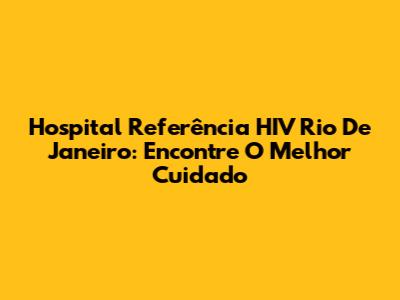 Hospital Referência HIV Rio De Janeiro: Encontre O Melhor Cuidado