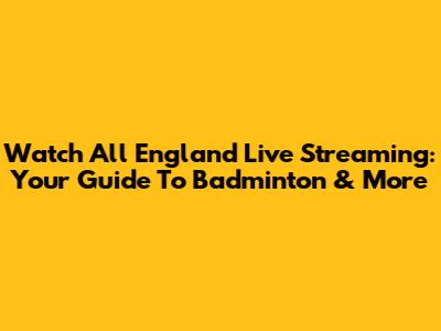Watch All England Live Streaming: Your Guide To Badminton & More