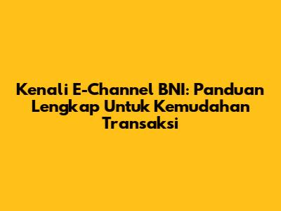 Kenali E-Channel BNI: Panduan Lengkap Untuk Kemudahan Transaksi