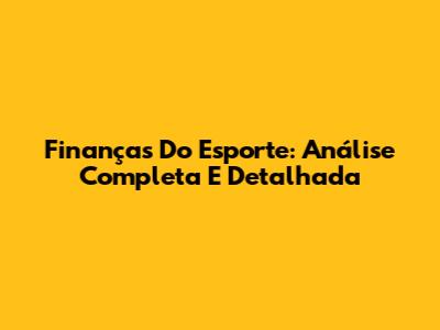 Finanças Do Esporte: Análise Completa E Detalhada